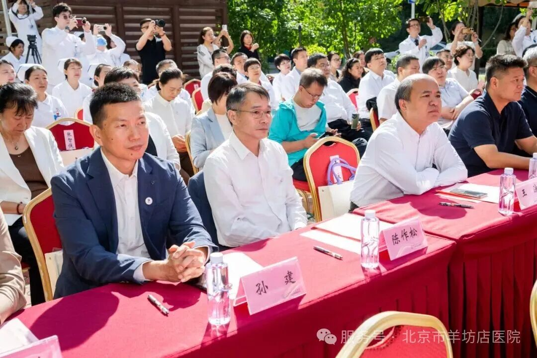 北京市教委主任李奕,北京市体育局二级巡视员孙素香,北京市体育局群体处处长苏峻,海淀区委常委、副区长岳立,海淀区人民政府副区长林航,海淀区羊坊店街道办事处书记张广玖,首都医科大学附属北京世纪坛医院书记周建新,首都体育学院党委书记杨海滨,首都体育学院党委副书记、院长张霞,北京市羊坊店医院党总支书记张绍波,北京市羊坊店医院院长刘雷等领导嘉宾出席活动。揭牌仪式由海淀区委卫生健康工委书记、区卫生健康委主任、二级巡视员李劲涛主持。