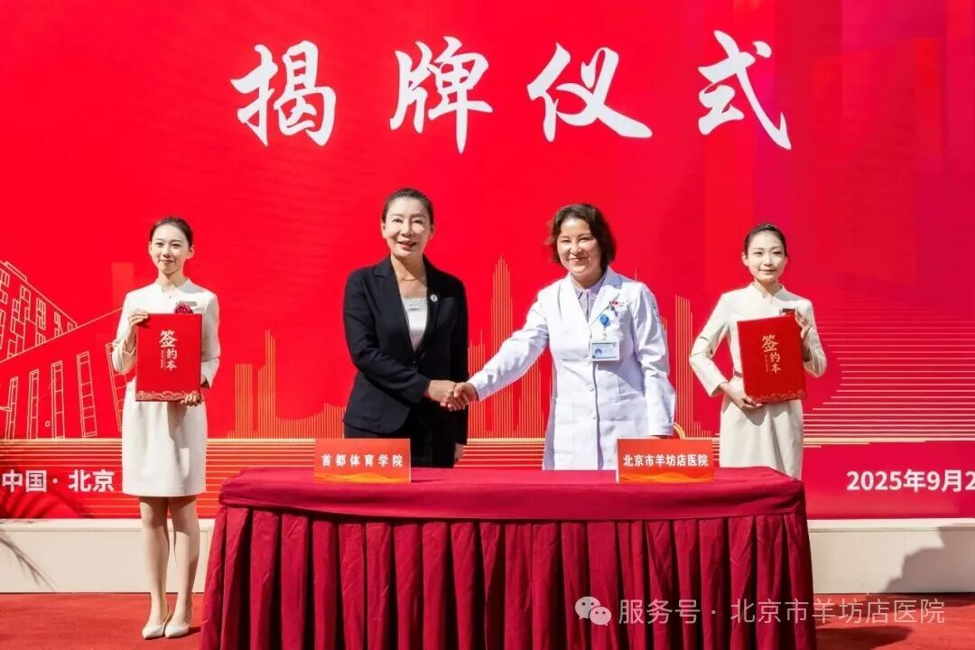 仪式上,首都体育学院党委副书记、院长张霞与北京市羊坊店医院院长刘雷签署合作协议,标志着双方在体医融合领域迈出了坚实一步。