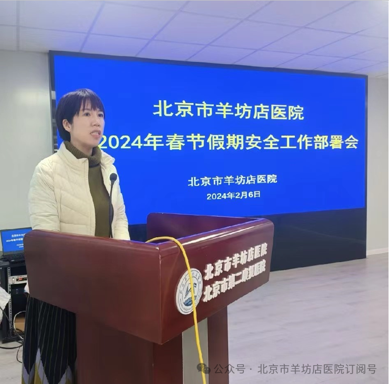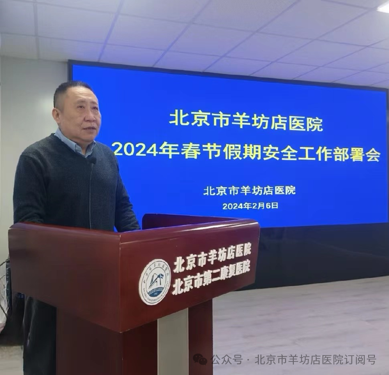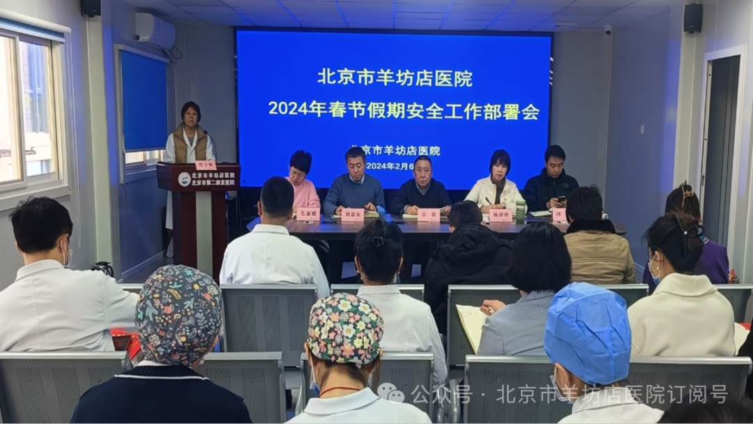 为确保2024年龙年春节期间各项工作安全、有序进行,2月6日下午,羊坊店医院召开2024年春节假期安全工作部署会暨“以案为鉴、以案促改”警示教育大会。医院院领导班子、中层干部、第三方驻场公司负责人参加了本次会议。