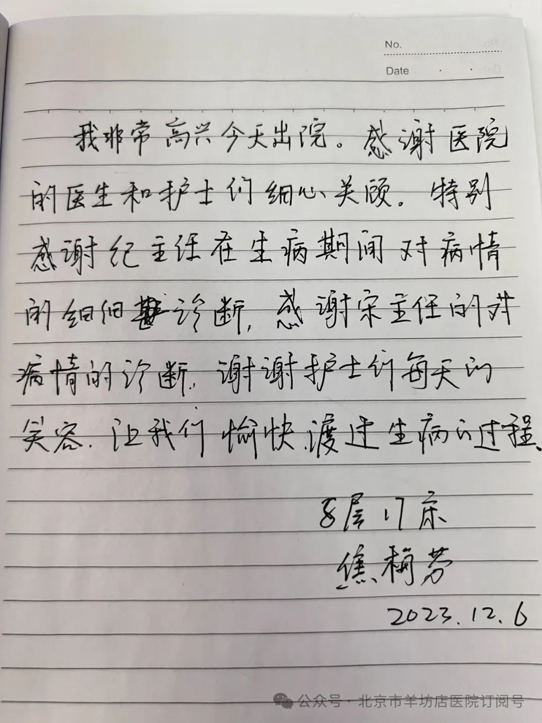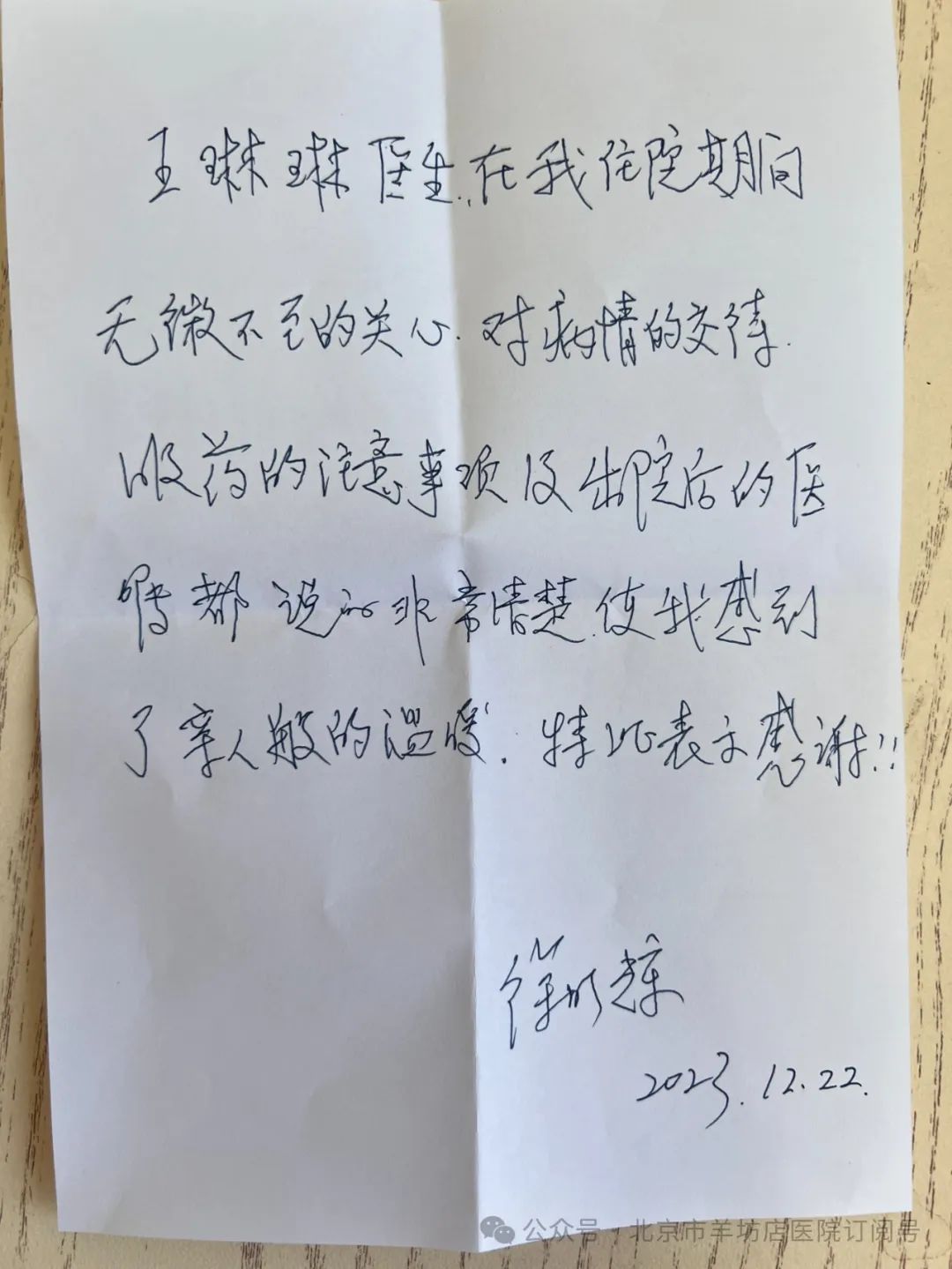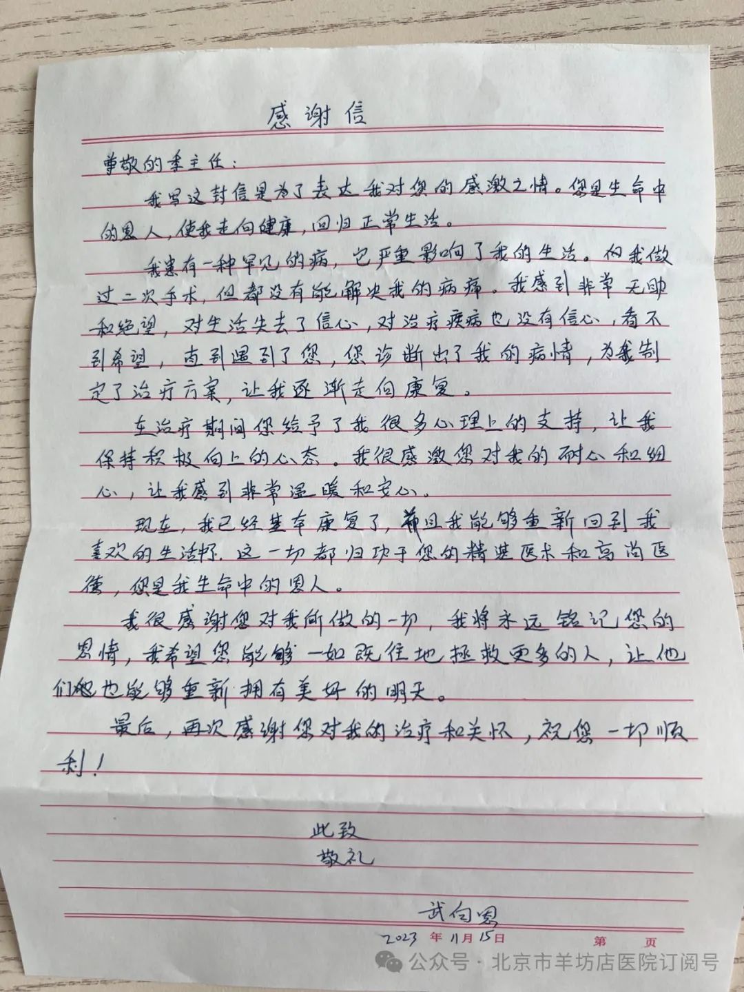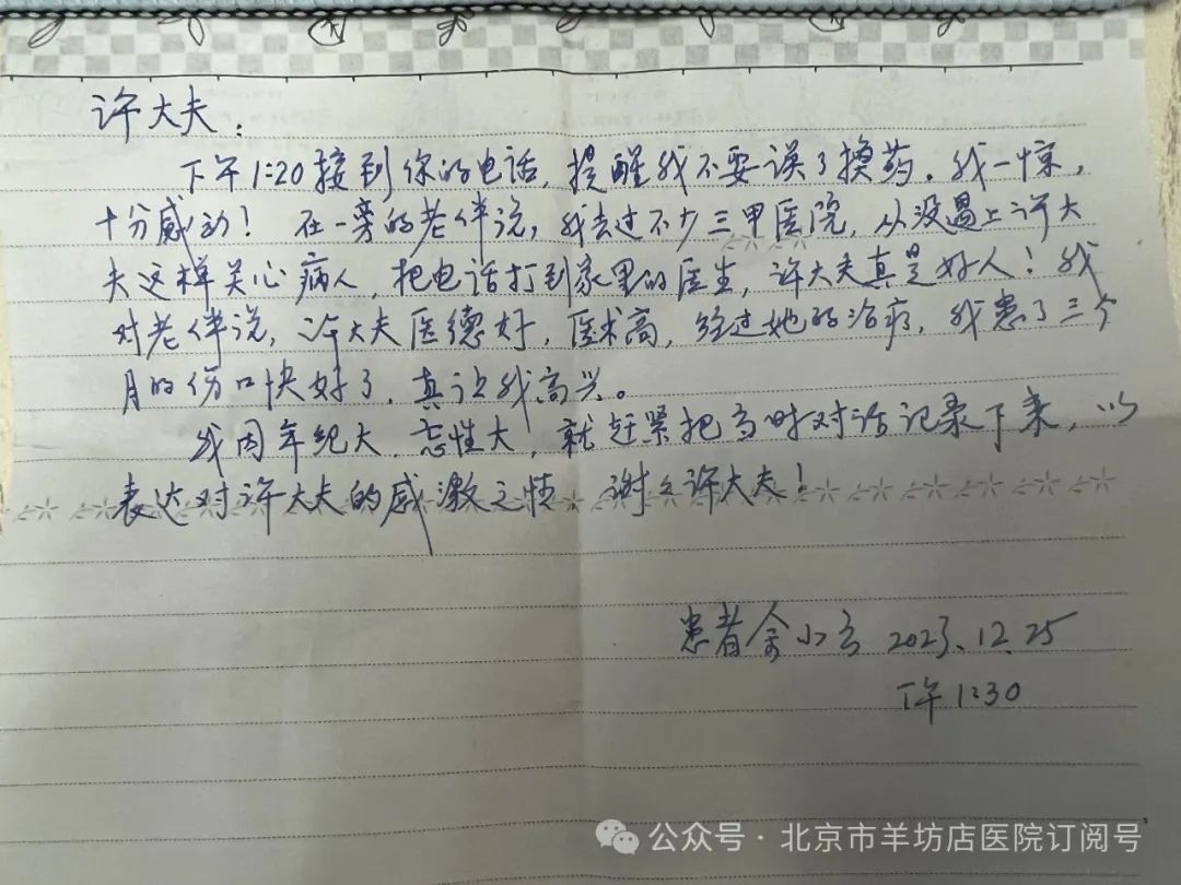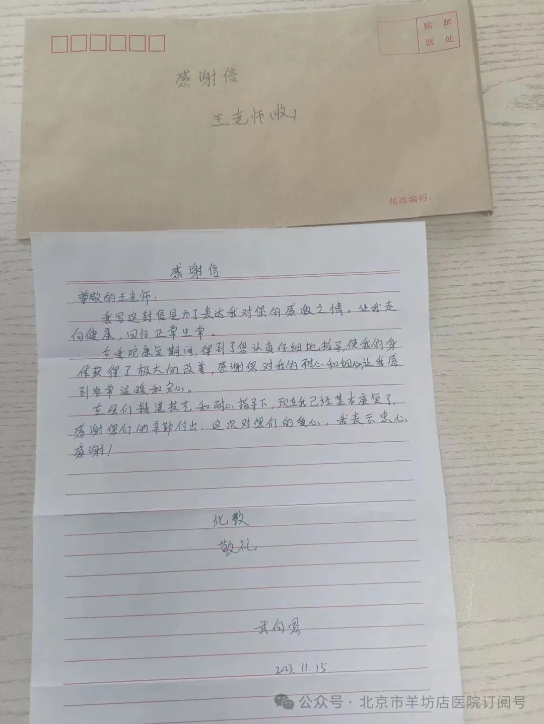 收到患者感谢信