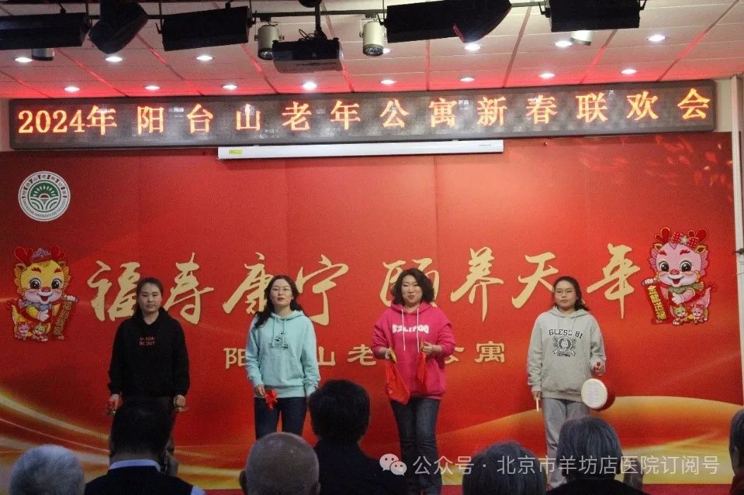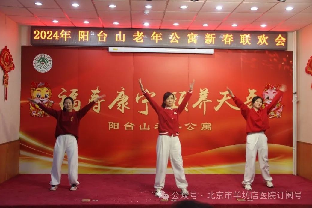 为弘扬尊老、敬老、爱老的中华传统美德,传播社会正能量,1月31日,北京市羊坊店医院艺术团在离退办郭迎春主任的带领下来到阳台山老年公寓,与老人们一同欢庆新春佳节,为他们送去节日的慰问和真挚的祝福。演出现场,丰富多彩的节目轮番上演,我院艺术团舞蹈队为老人们带来了热情洋溢的歌舞《相亲相爱》。