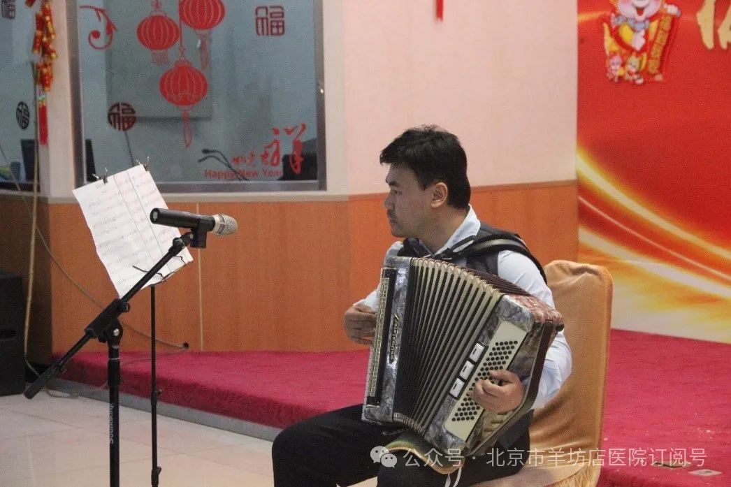 检验科赵旭为大家献上了深情款款手风琴独奏《贝加尔湖畔》、《山楂树》和《喀秋莎》。
