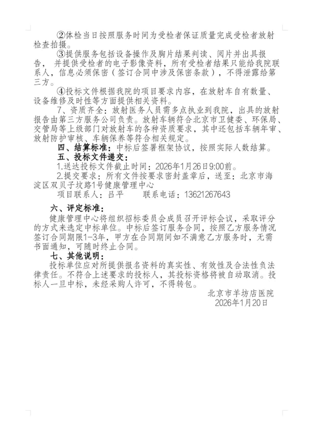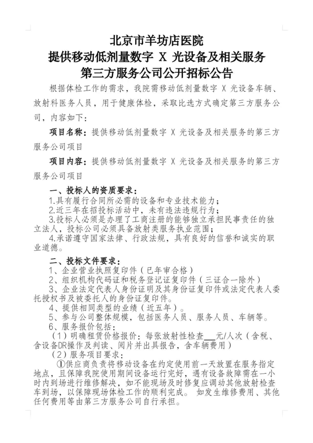北京市羊坊店医院提供移动低剂量数字X光设备及相关服务第三方服务公司公开招标公告