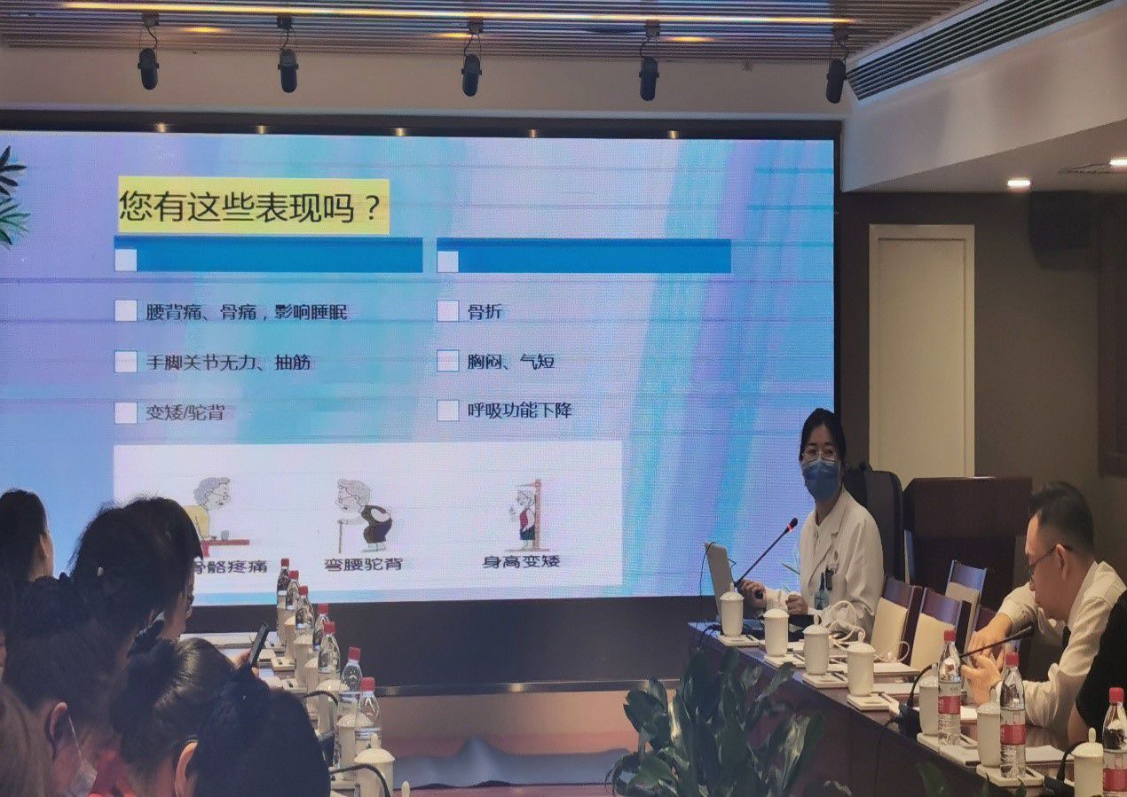 放射科副主任张琦介绍了放射科的基本情况,并以“腰背痛,我是怎么了”为题,通过图片让大家了解生命周期中人体钙流失的全过程、骨质疏松症对身体的不利影响及骨质疏松金标准——双能X线骨密度仪的功能,通过张琦的介绍,大家对科学补钙有了更深的了解和认识。